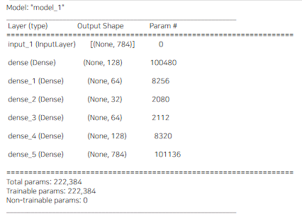 autoencoder.summary() # ์ผ์ชฝ ๊ฒฐ๊ณผ