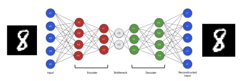 ⇒ Bottleneck (= latent space, ์ ์ฌ๊ณต๊ฐ, ํผ์ฒ, ์ฝ๋) ์ด ์ด๋ฃจ์ด์ง - ํ๋ ํจํด : ์ ์ฌ ํํ์ ํ์ตํ๋ ์จ๊ฒจ์ง ํจํด