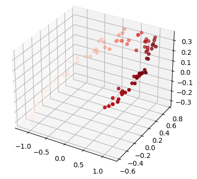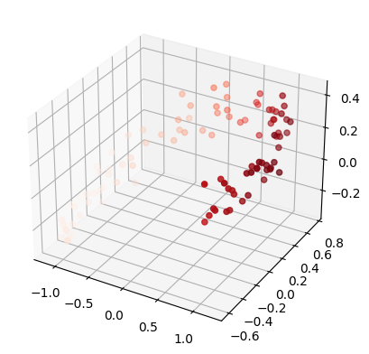 decodings[:, 2], c=decodings[:, 0], cmap='Reds');