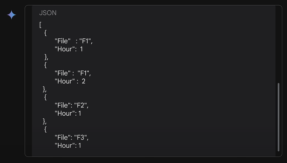 - Gemini ์ถ๋ ฅ : ํ์ํ ๋จ๊ณ ๋ฐํ ๋ฐ JSON ํ์์ผ๋ก ๋ณํํ ์ถ๋ ฅ